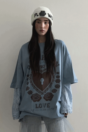 蕾絲蛋糕手袖塗鴉假兩件上衣
