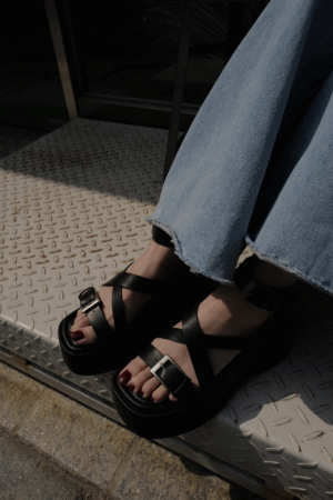 交叉綁帶厚底涼鞋