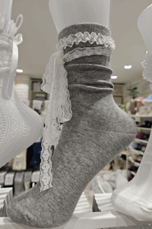 緞帶蕾絲中筒襪