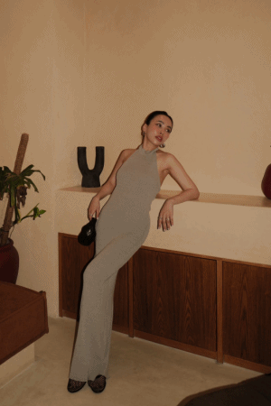 削肩露背針織洋裝